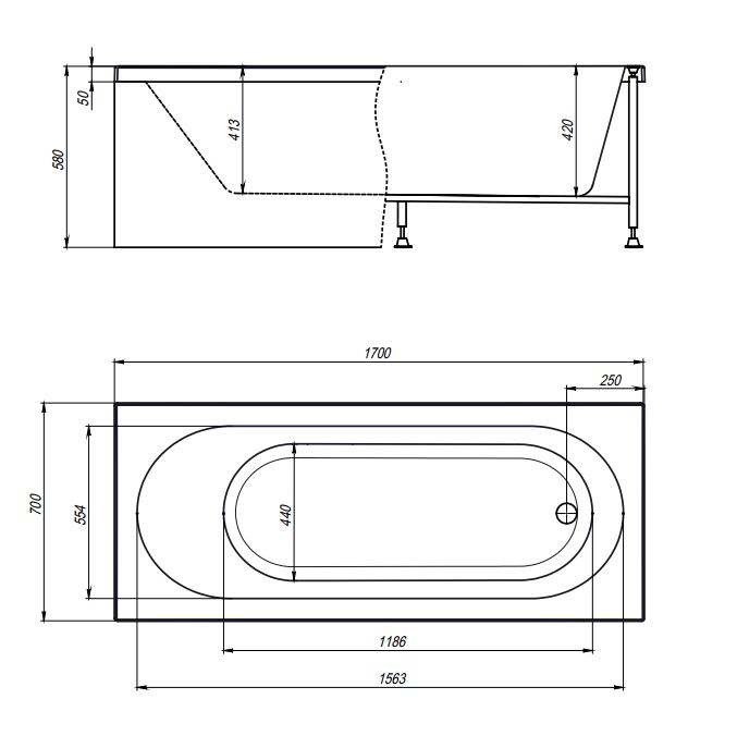 —Ванна акриловая гидромассажная Timo ROHA ROHA1770-KT17-SPV1505-T-CM-FP17S 170х70 пристенная прямоугольная с каркасом