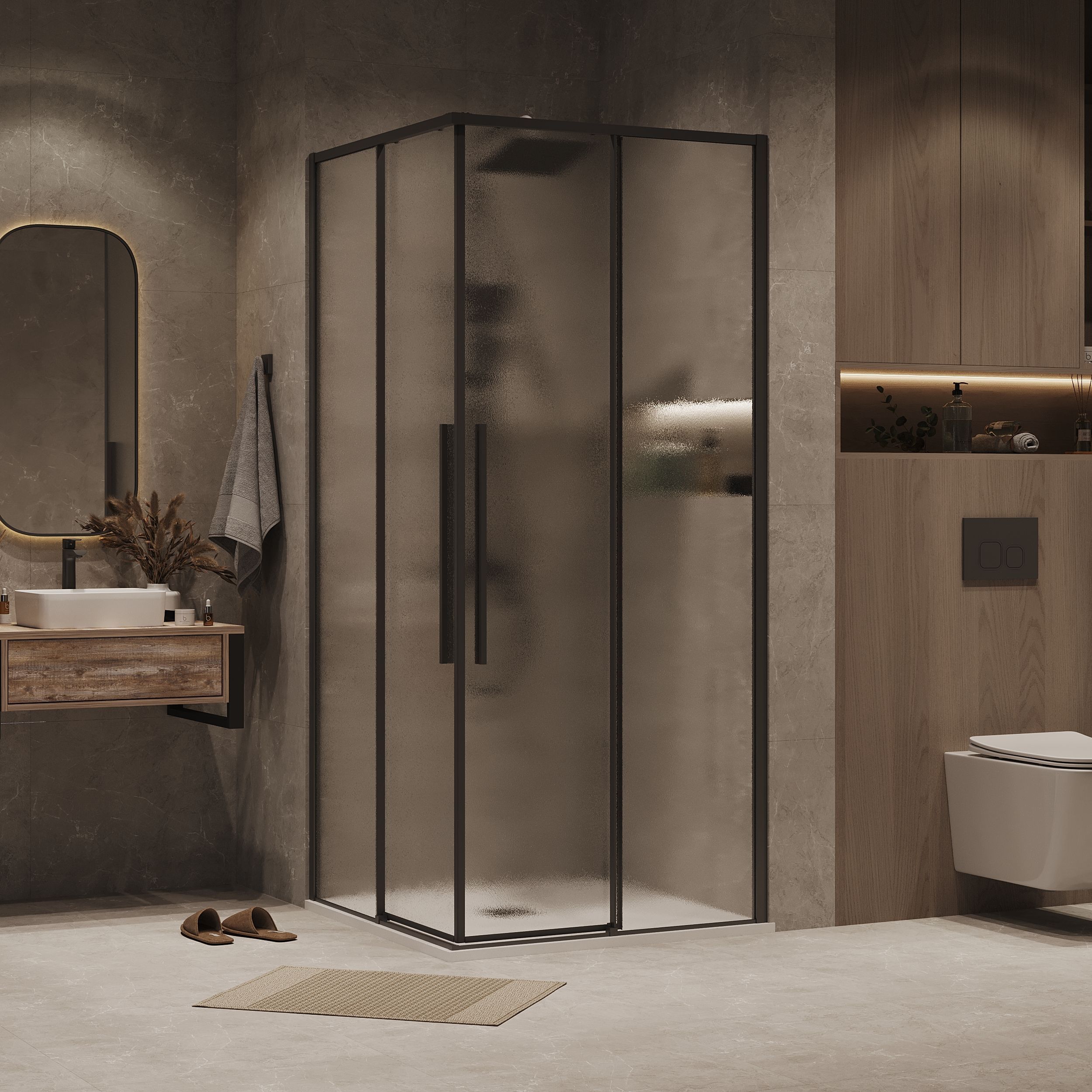 —Душевая дверь Grossman Galaxy 1/2.K33.01.10.21.02 100х195 стекло текстурное профиль черный матовый