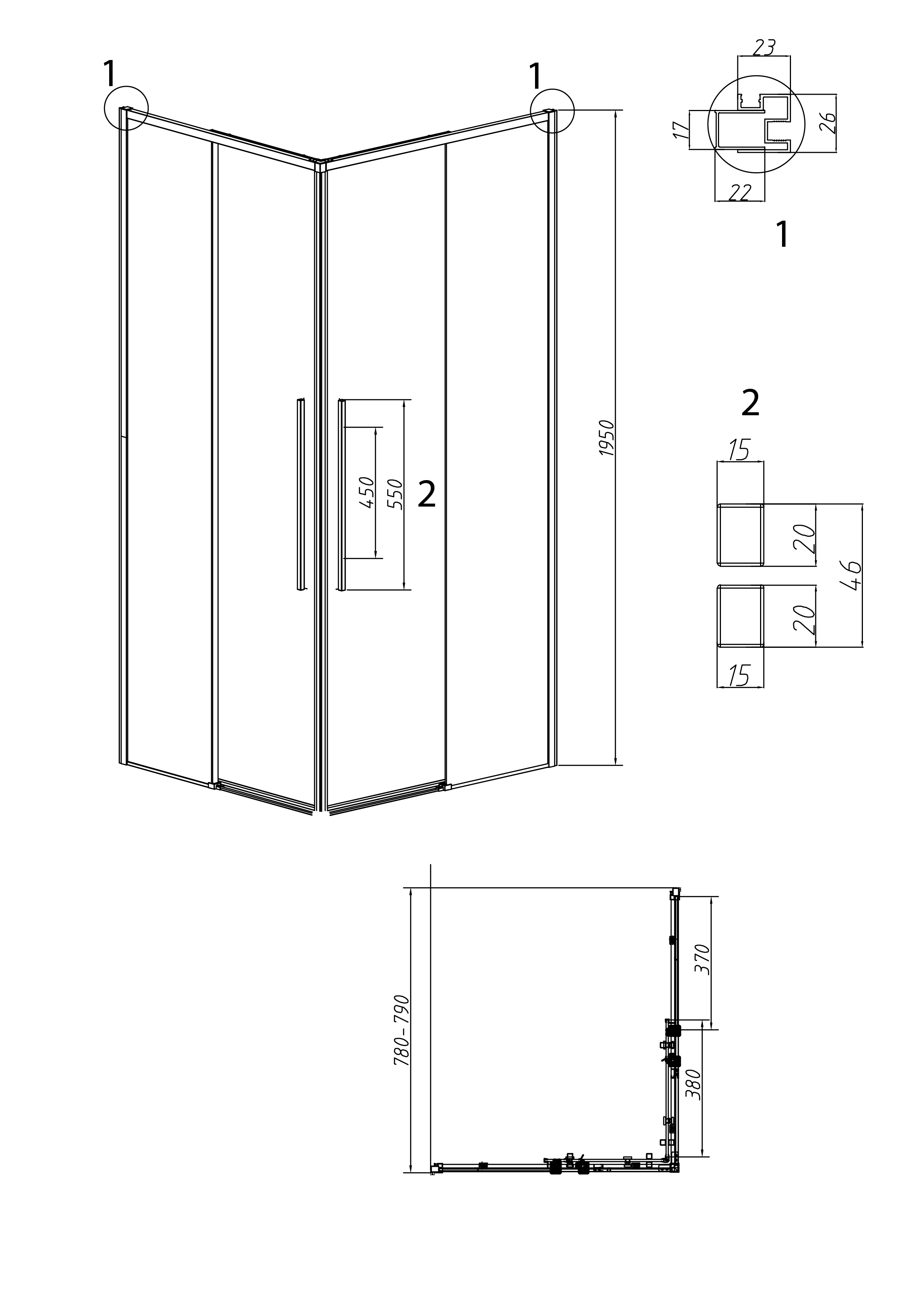 —Душевая дверь Grossman Galaxy 1/2.K33.01.80.32.00 80х195 стекло прозрачное профиль золото глянцевое