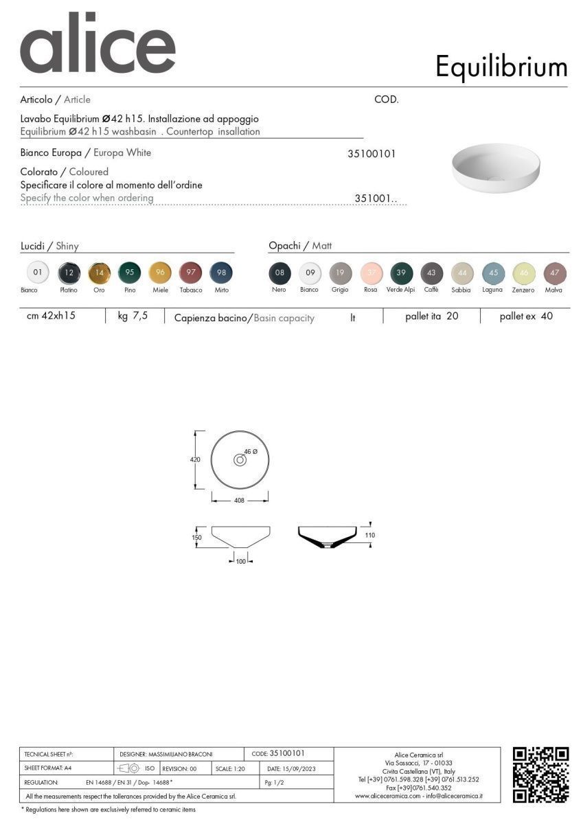 —Раковина керамическая Alice Equilibrium 35100101 40х40 накладная цвет белый