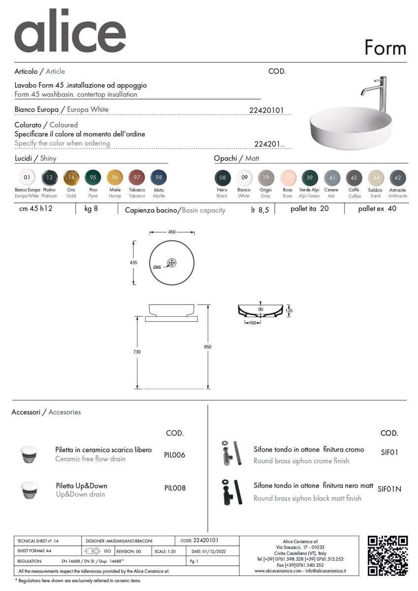 —Раковина керамическая Alice Form 22420101 50х50 накладная цвет белый без отверстий под смеситель