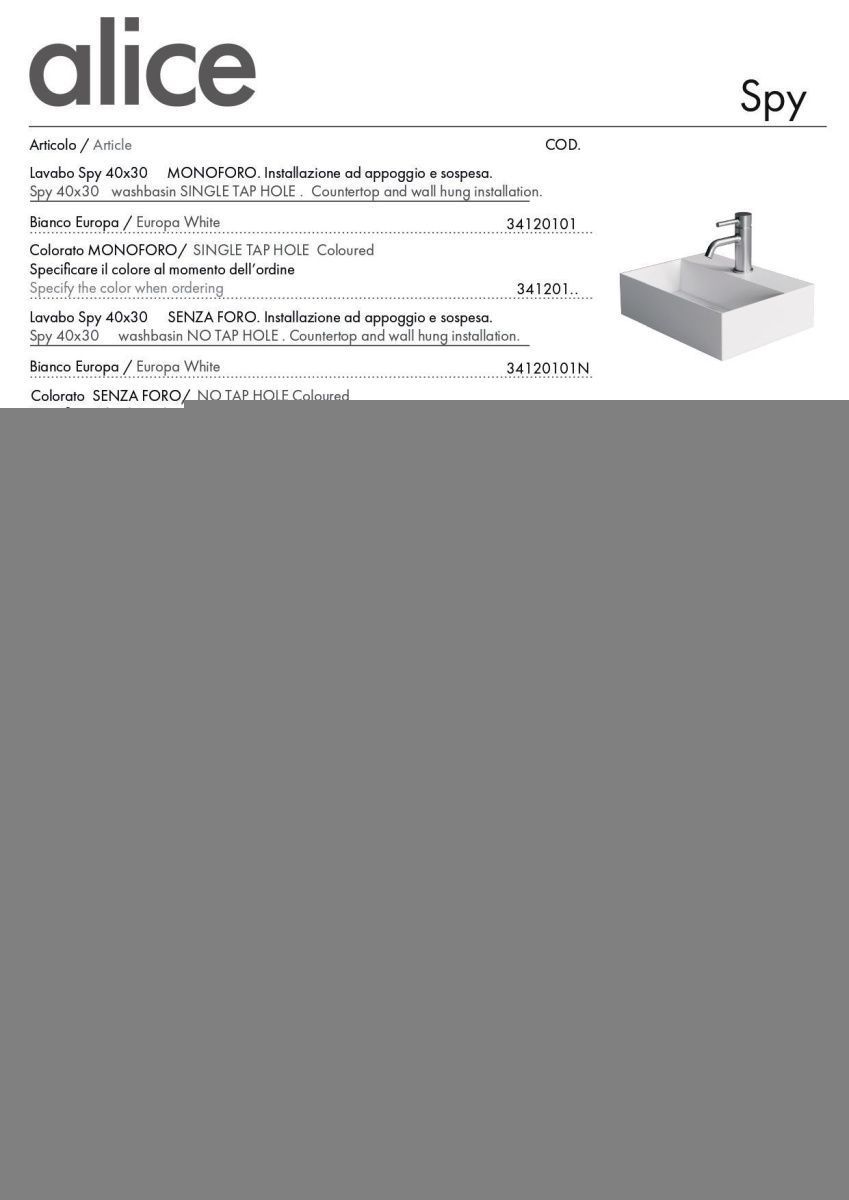 —Раковина керамическая Alice Spy 34120101 40х30 подвесная цвет белый