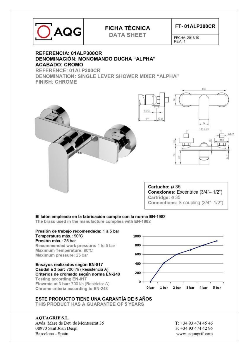 —Смеситель для душа AQG Alpha 01ALP300CR настенный хром
