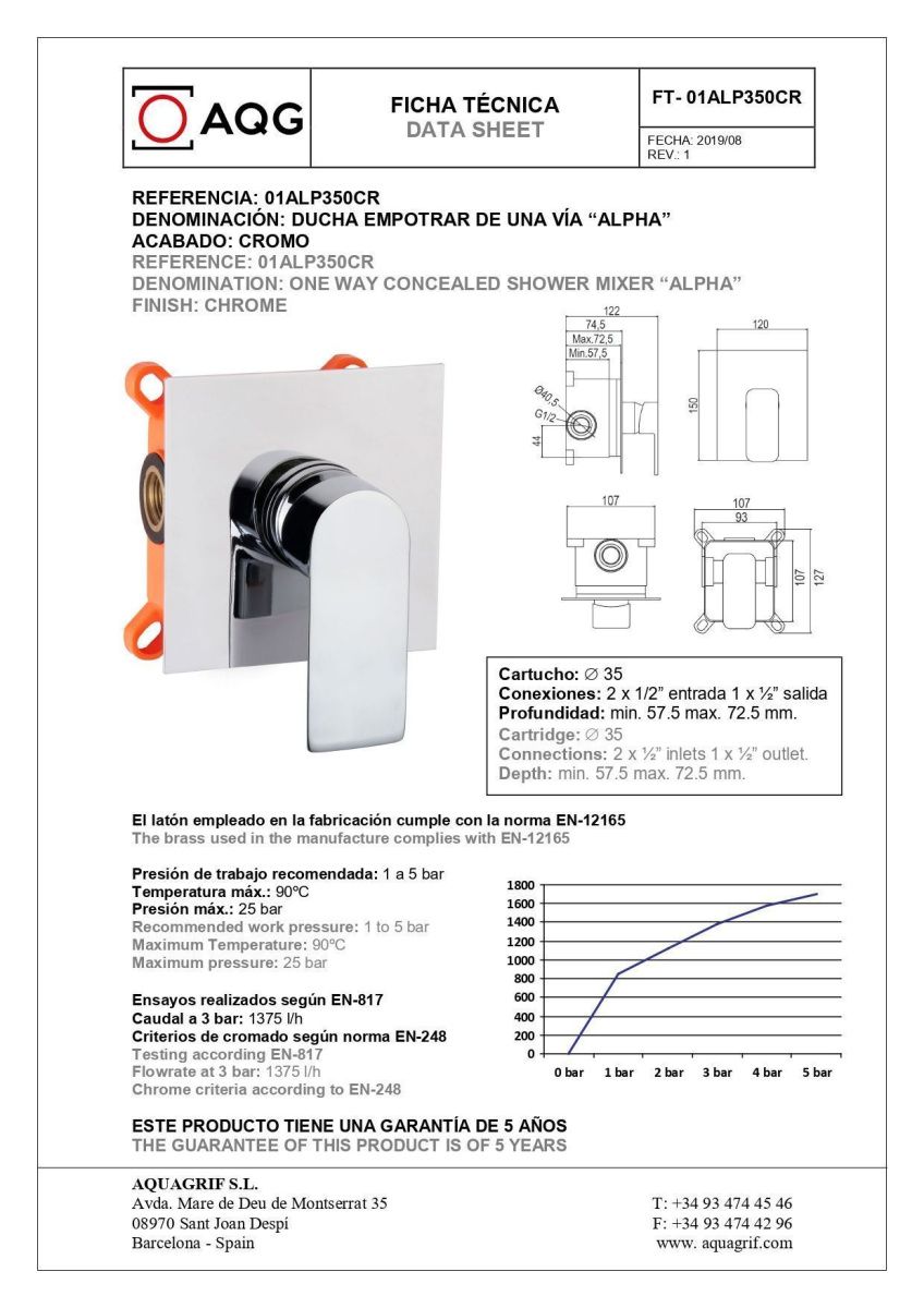 Смеситель для душа AQG Alpha 01ALP350CR встраиваемый в стену хром
