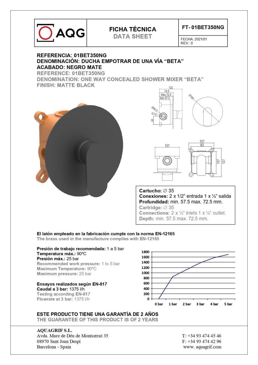 —Смеситель для душа AQG Beta 01BET350NG встраиваемый в стену черный