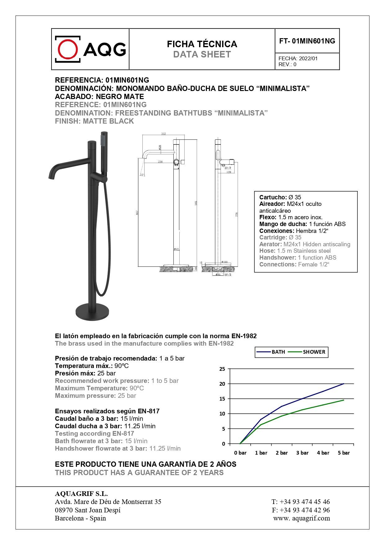 Смеситель AQG Min 01MIN601NG напольный черный матовый