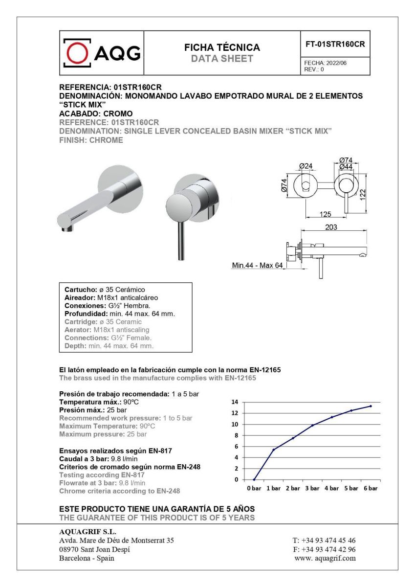 Смеситель для раковины AQG Stick 01STR160CR встраиваемый в стену хром