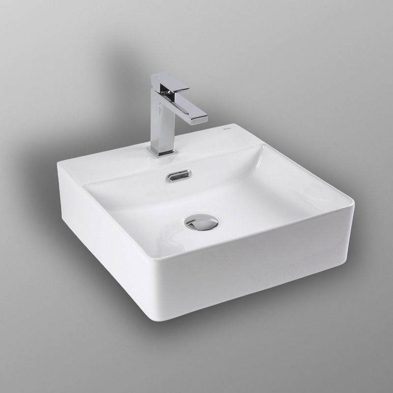 —Раковина из сантехнического фарфора Bond Cube S02-420 40х40 накладная цвет белый 1 отверстие под смеситель