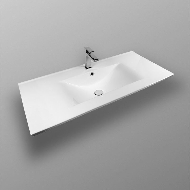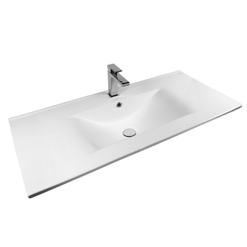 Раковина встраиваемая прямоугольная 100*46*17см белая BOND Cube S05-1000 с переливом и отверстием под смеситель имеет стильный дизайн и отлично смотрится в современном интерьере ванной комнаты. Она изготовлена из высококачественного сантехнического фарфора, покрытого утолщенным слоем стекловидной глазури, которая защищает поверхность от скапливания бактерий и выцветания, придает ей блеск и обеспечивает очень легкий уход за ней. Прямоугольная врезная раковина имеет бортик в тыльной части, предотвращающий попадание воды в область примыкания к стене, а ее горизонтальная поверхность замечательно подходит для хранения туалетных принадлежностей. Раковина прекрасно сочетается с различными стилями интерьера и будет радовать Вас долгие годы. К данной раковине подходят донные клапаны с переливом BOND BV0200 или BV0205.