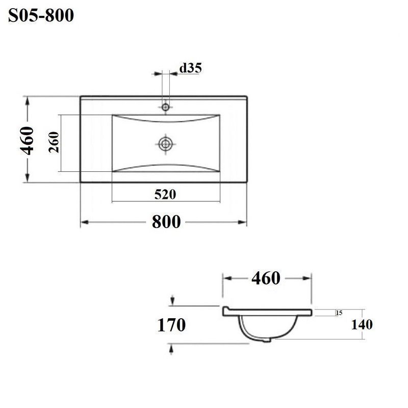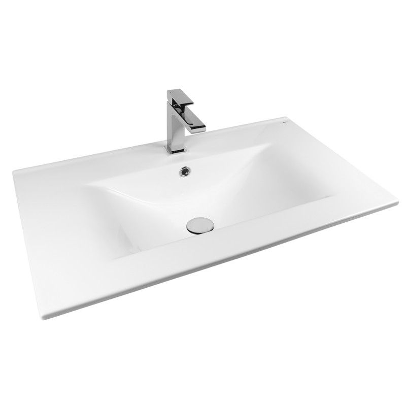 Раковина встраиваемая прямоугольная 80*46*17см белая BOND Cube S05-800 с переливом и отверстием под смеситель имеет стильный дизайн и отлично смотрится в современном интерьере ванной комнаты. Она изготовлена из высококачественного сантехнического фарфора, покрытого утолщенным слоем стекловидной глазури, которая защищает поверхность от скапливания бактерий и выцветания, придает ей блеск и обеспечивает очень легкий уход за ней. Прямоугольная врезная раковина имеет бортик в тыльной части, предотвращающий попадание воды в область примыкания к стене, а ее горизонтальная поверхность замечательно подходит для хранения туалетных принадлежностей. Раковина прекрасно сочетается с различными стилями интерьера и будет радовать Вас долгие годы. К данной раковине подходят донные клапаны с переливом BOND BV0200 или BV0205.