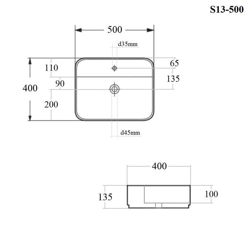 Раковина накладная прямоугольная 50*40*13,5см белая BOND Cube S13-500 с закругленными углами и отверстием под смеситель имеет стильный дизайн и отлично смотрится в современном интерьере ванной комнаты. Раковина-чаша изготовлена из высококачественного сантехнического фарфора, покрытого утолщенным слоем стекловидной глазури, которая защищает поверхность от скапливания бактерий и выцветания, придает ей блеск и обеспечивает очень легкий уход за ней. Раковина прямоугольная с закругленными углами, ее внешняя обтекаемая форма не позволяет накапливаться пыли. Прекрасно сочетается с различными стилями интерьера и будет радовать Вас долгие годы. К данной раковине подходят донные клапаны без перелива BOND BV0100 или BV0105.