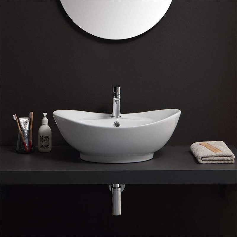 Раковина накладная овальная 59*39*20,5см белая BOND Oval S15-590 с переливом и отверстием под смеситель имеет стильный дизайн и отлично смотрится в современном интерьере ванной комнаты. Раковина-чаша изготовлена из высококачественного сантехнического фарфора, покрытого утолщенным слоем стекловидной глазури, которая защищает поверхность от скапливания бактерий и выцветания, придает ей блеск и обеспечивает очень легкий уход за ней. Раковина овальная, ее внешняя обтекаемая форма не позволяет накапливаться пыли. Прекрасно сочетается с различными стилями интерьера и будет радовать Вас долгие годы. К данной раковине подходят донные клапаны с переливом BOND BV0200 или BV0205.