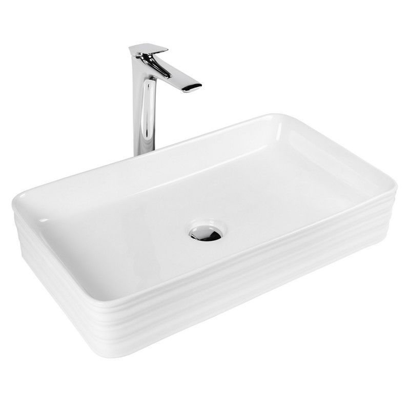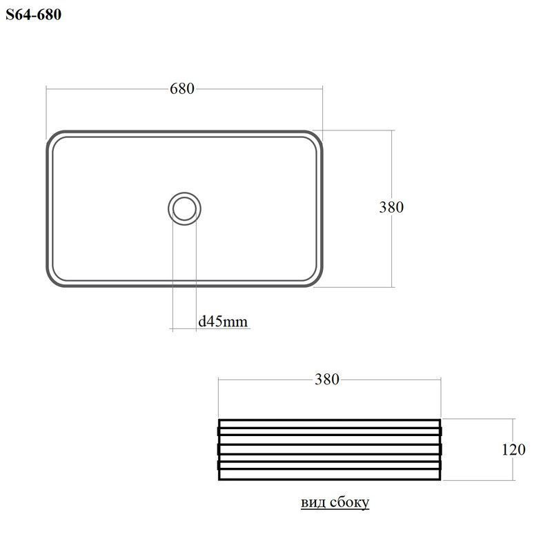 Раковина накладная прямоугольная 68*38*12см белая BOND Cube S64-680 с закругленными углами без перелива и отверстия под смеситель имеет стильный дизайн, красивую внешнюю рельефную поверхность и отлично смотрится в современном интерьере ванной комнаты. Раковина-чаша изготовлена из высококачественного сантехнического фарфора, покрытого утолщенным слоем стекловидной глазури, которая защищает поверхность от скапливания бактерий и выцветания, придает ей блеск и обеспечивает очень легкий уход за ней. Прекрасно сочетается с различными стилями интерьера и будет радовать Вас долгие годы. К данной раковине подходят донные клапаны без перелива BOND BV0100, BV0105 и BV0188.