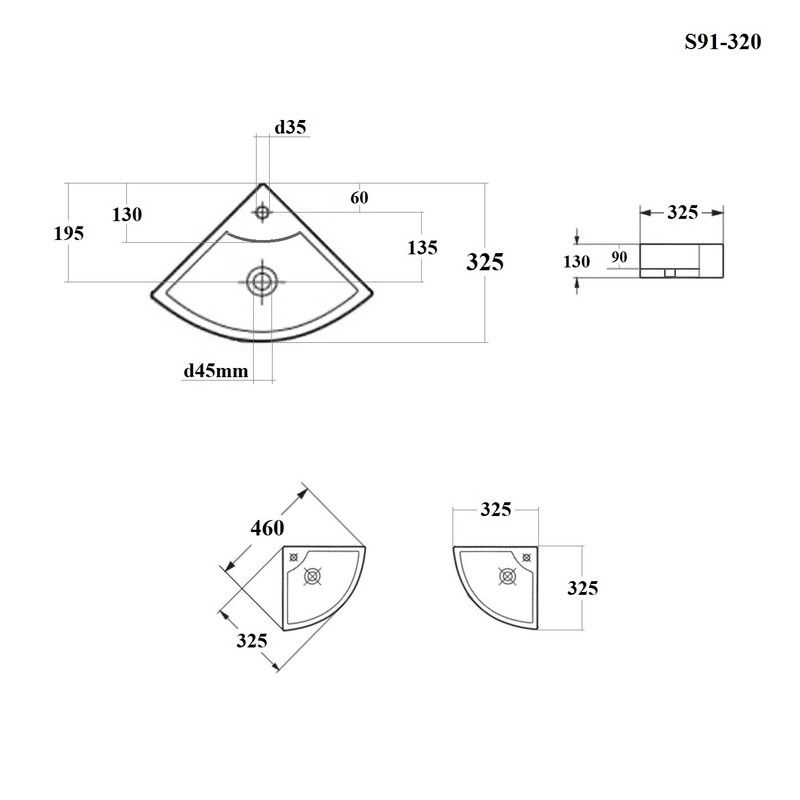Раковина угловая 32,5*32,5*13см настенная BOND Corner S91-320 с переливом имеет эргономический стильный дизайн и будет отлично смотреться в интерьере небольшой ванной комнаты. Она изготовлена из высококачественного сантехнического фарфора, покрытого утолщенным слоем стекловидной глазури, которая защищает поверхность от скапливания бактерий и выцветания, придает ей блеск и обеспечивает очень легкий уход за ней. Раковина имеет встроенную систему перелива, предохраняющая от вытекания воды наружу. Она прекрасно сочетается с различными стилями интерьера и будет радовать Вас долгие годы. К данной раковине подходят донные клапаны с переливом BOND BV0200 или BV0205.