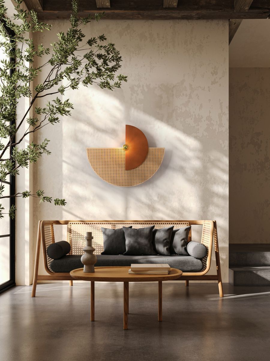 Тканевые настенные бра серии Carry это сочетание полукруга различных размеров. Абажуры выполнены из ткани и ротанга. Цветовые сочетания в трендах 2024-2025 года: белый, зеленый, терракотовый, винный, светло бежевый и ротанговый. Арматура — металл латунного цвета. Цоколь E27, рассчитан на лампу мощностью до 60 Вт в комплекте. Лампа с золотым напылением для скользящего освещения. Рекомендовано создавать собственные сценарии и располагать половинки абажура под разным углом друг к другу. Комплексная развеска создает необычный эффект на стене, визуально увеличивая пространство.