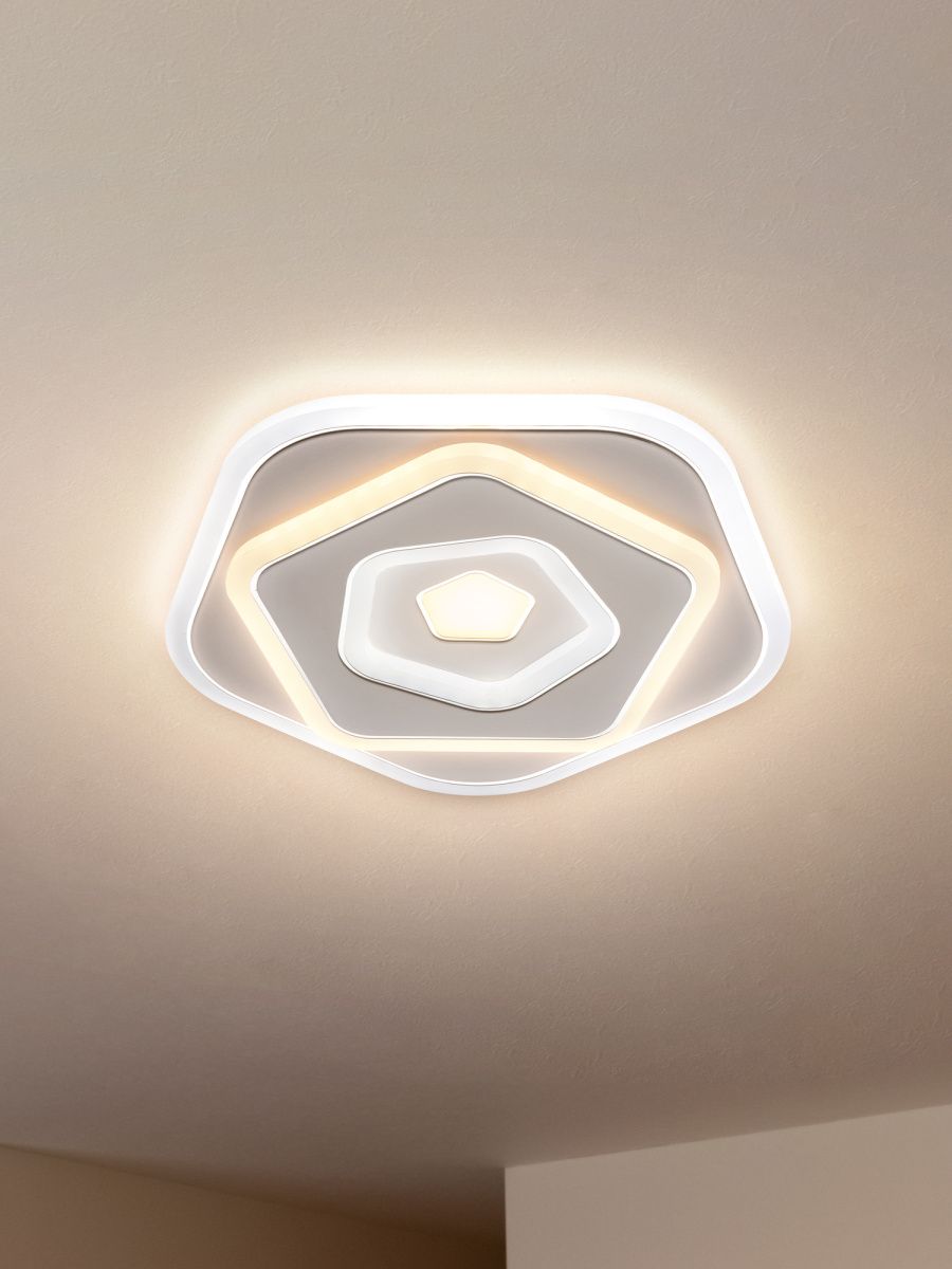 Движущийся свет – оптическая иллюзия, которая создается благодаря нетривиальному геометричному дизайну серии  Iona. Четыре пятиугольника со скругленными углами наслаиваются друг на друга, привлекая внимание – такой светильник можно смело использовать в качестве визуального акцента. Его арматура сочетает металл и акрил, надежные и долговечные в эксплуатации. Белая палитра и минималистичный внешний вид идеальны для большинства современных интерьеров. LED-источники комфортны для зрения, дарят мягкий и яркий световой поток, актуальный для зон отдыха в гостиной и спальне. Чередование контуров с холодным и теплым светом позволяет светильнику стать настоящим арт-объектом. Используйте бра для акцентной и зональной подсветки в обстановках, выполненных в стиле минимализм, хай-тек, сканди, техно.