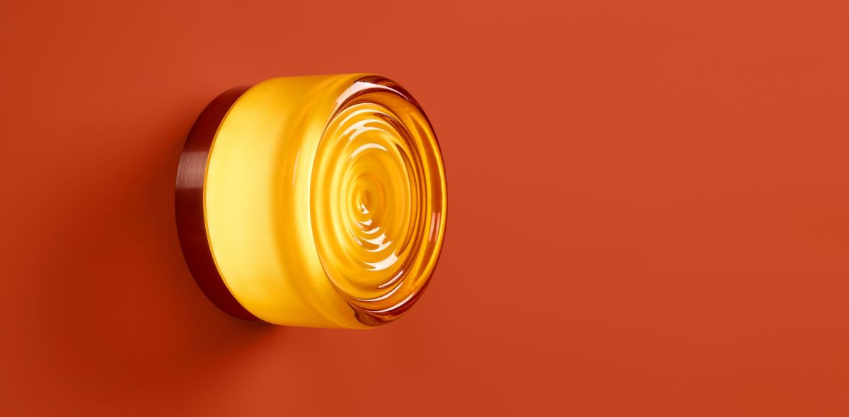 Металлическая арматура в цвете никель в трех  рельефных основаниях. Плафоны, выполненные в приглушенно пшеничном и янтарном оттенках, доступны в двух размерах. LED источник света 2400К/2550К/3000K.