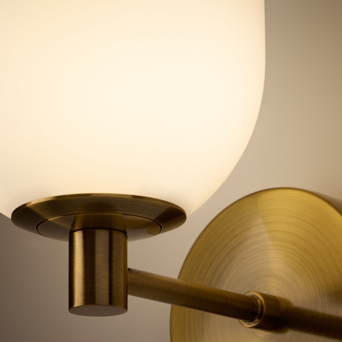 Арматура из металла цвета латуни. Плафоны овальной формы из белого матового стекла. Форма плафонов дает рассеянный свет, максимальная пропускная способность. Источник света лампа. Цоколь G9. Широкая линейка позволяет организовать комплексное освещение в едином стиле.