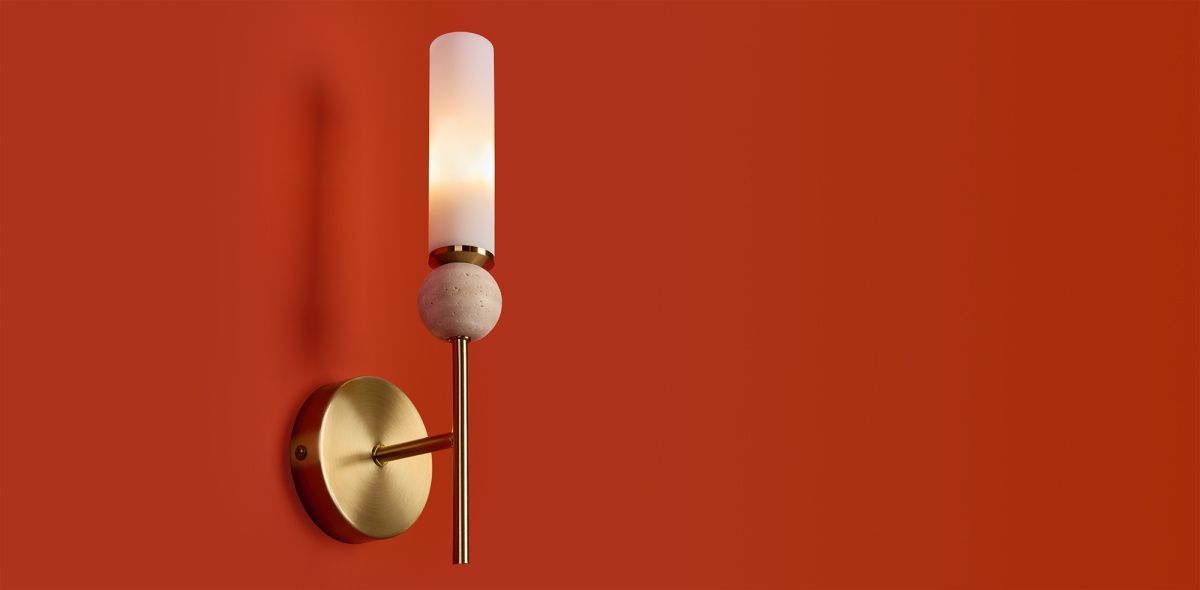 Серия Sunspot использует камень травертин как основной декоративный элемент. Настенные бра в двух вариантах: с матовым белым стеклянным плафоном и со «скользящим» теплым светом. Отличительная черта бра: увеличенный размер плафона и сенсорное включение/выключение без диммирования. Подвесные светильники имеют прозрачные стеклянные плафоны с декоративными шариками из камня травертин. Sunspot включают три модели подвесов разных размеров и форм стеклянной окантовки на плафон. Арматура — металл латунного и черного цвета Источники света LED 3000K и цоколь G9. Настольная лампа с touch переключателем  . Серия создает комплексное зональное и  акцентное освещение, подходящее для создания уютной атмосферы.