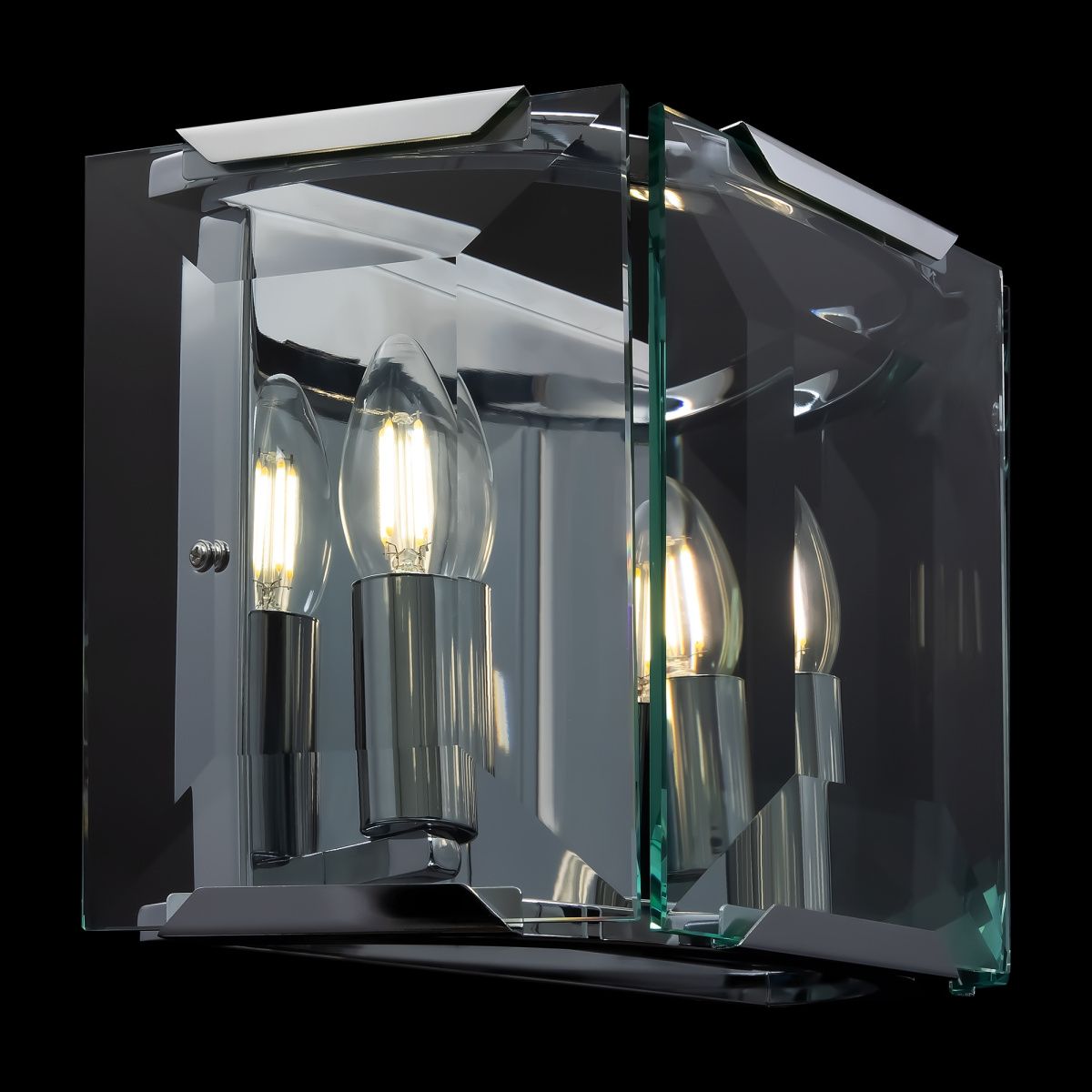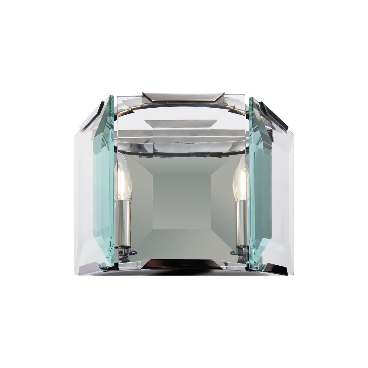 Арматура из металла, цвет – хром. Плафон составляют пластины из прозрачного оптического стекла. Металлический каркас плафона окрашен в тон арматуре. Высота подвесных моделелей регулируется.