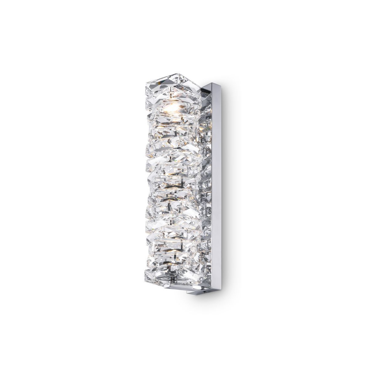 Арматура из нержавеющей стали и стекла, цвет арматуры – хром. Фактурный плафон с декором из стеклянного массива. Источник света – светодиоды с цветовой температурой 3000К.