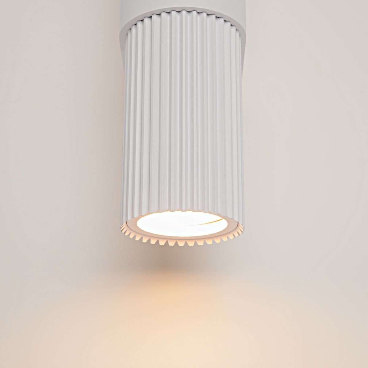 Материал арматуры — алюминий. Порошковое окрашивание в три цвета: матовый черный, матовый белый, матовое золото. Плафон с трендовой рифленой фактурой. Подвесные модели с внешним стеклянным элементом. Яркий направленный свет.