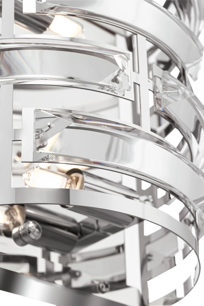 Арматура из нержавеющей стали, цвет арматуры – хром. Металлический каркас абажура декорирован прозрачным хрусталем. Высота подвесных моделей регу лируется.