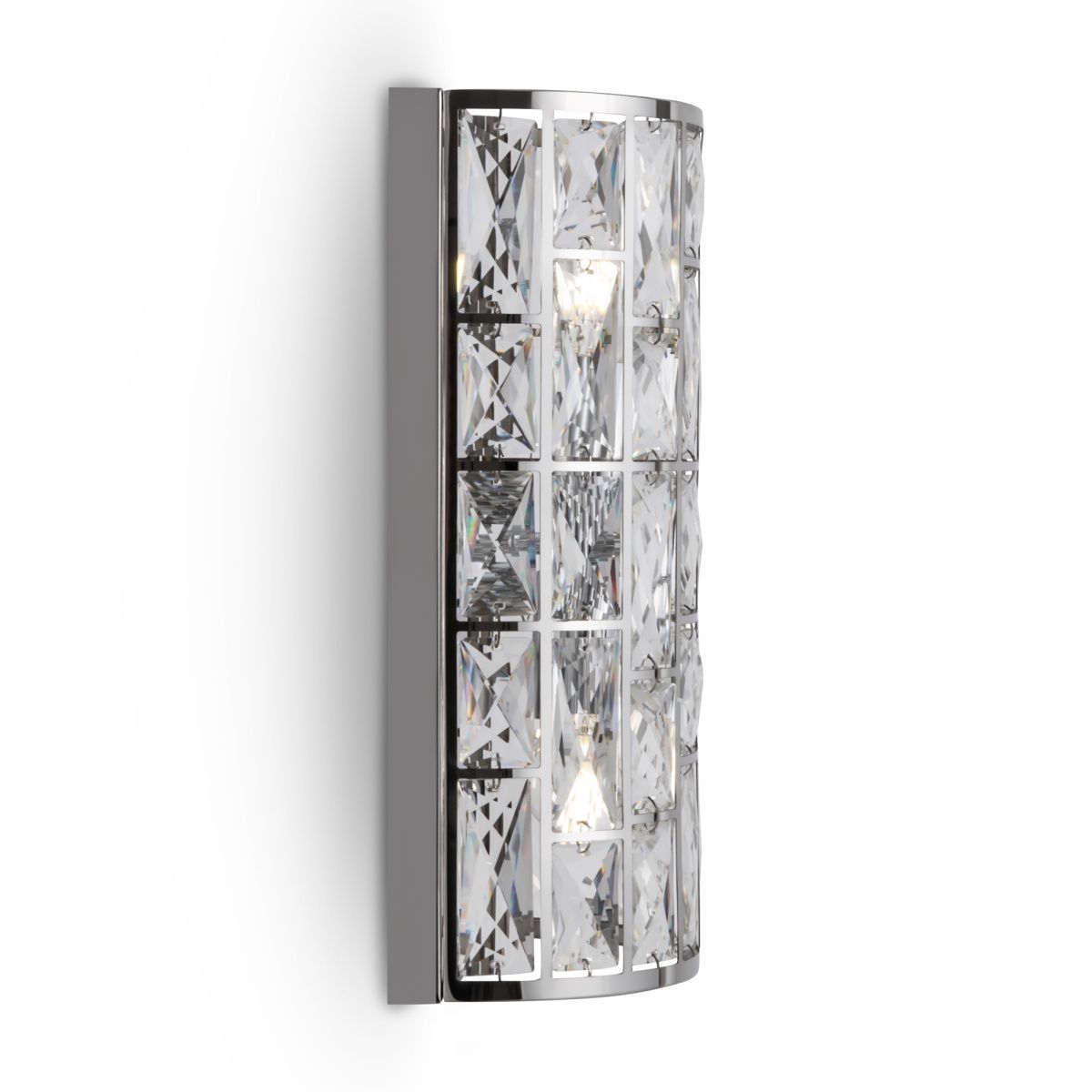 Металлическая арматура, цвет – хром. Каркас абажура – металл, декор – прозрач ный хрусталь. Потолочные модели с рассеивателем из матового стекла. Высота подвесных светильников регулируется.