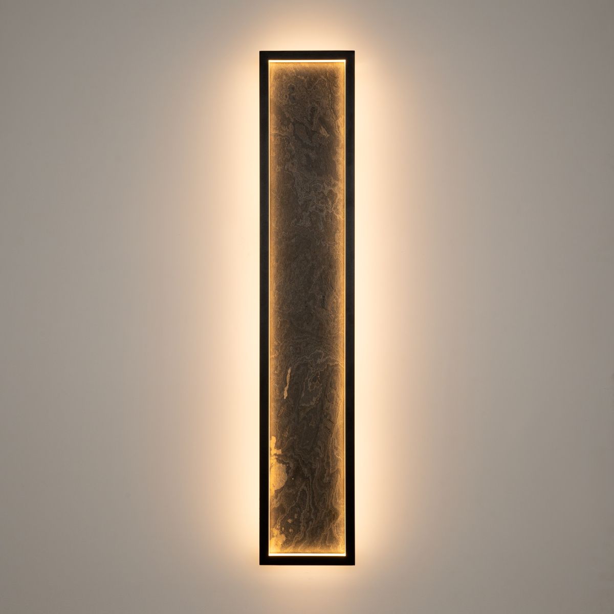 Сочетание первозданных материалов и современных технологий освещения. Корпус из натурального камня серого цвета с естественным рисунком и прожилками, подсвеченный LED-источником света с температурой 3000К. Цвет арматуры — черный. Материал арматуры — металл. Светодиодный источник света. Два размера потолочных и настенных моделей. Игра света и тени подчеркивает природный рельеф камня. Высокий индекс цветопередачи >90 Ra для естественного освещения.