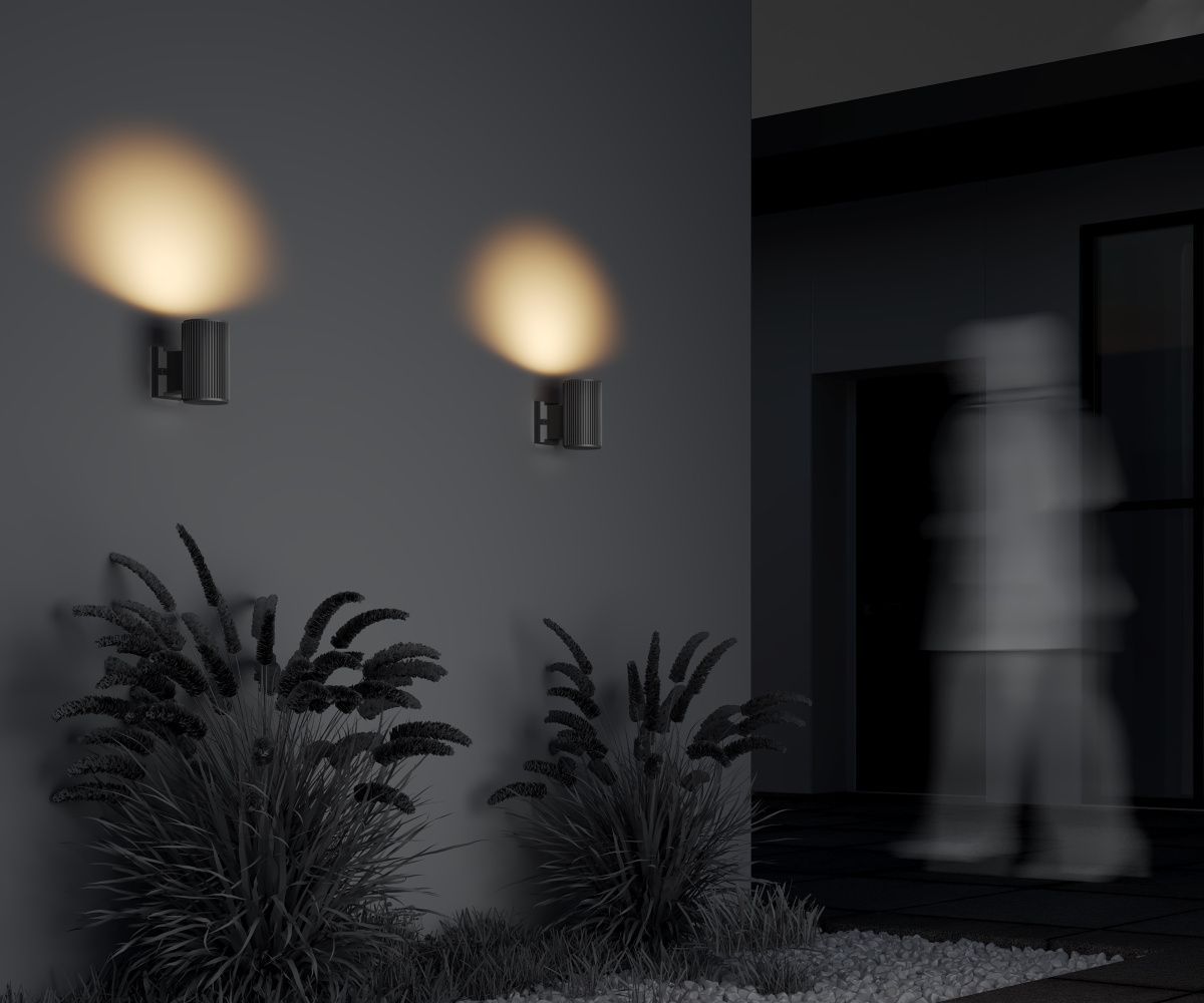 Фактурные настенные светильники для архитектурной подсветки. Металлический корпус устойчив к коррозии. IP 54 обеспечивает высокий уровень защиты от пыли и влаги. Комплектация светильников позволяет настраивать двухсторонний и однонаправленный световой поток. В серии представлены модели, рассчитанные на 1 и 2 лампы (Е27). Три оттенка на выбор: черный, серый, белый.