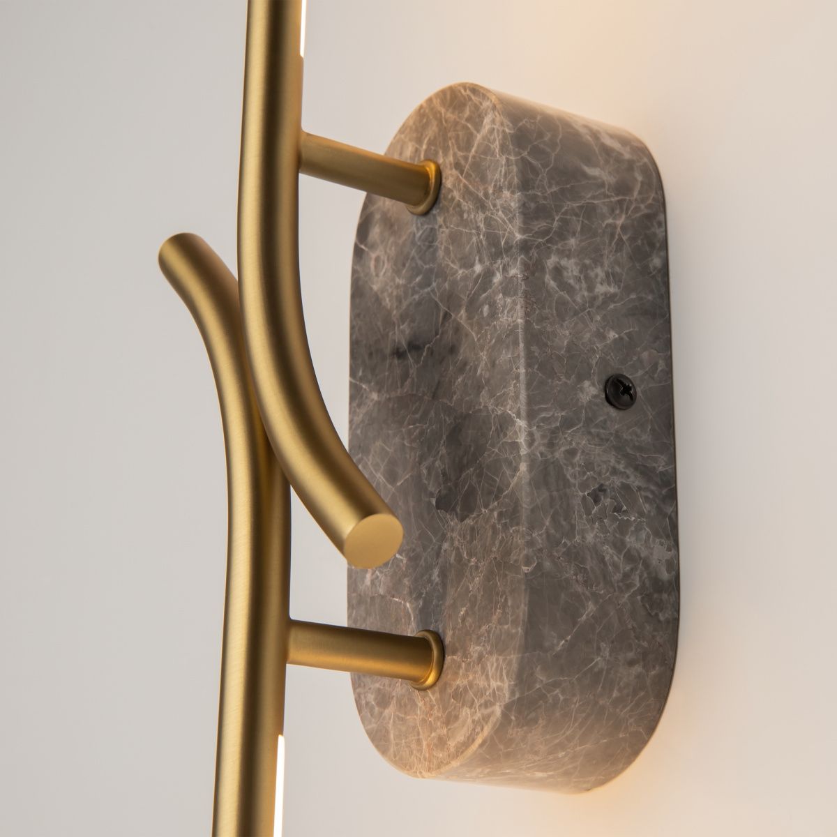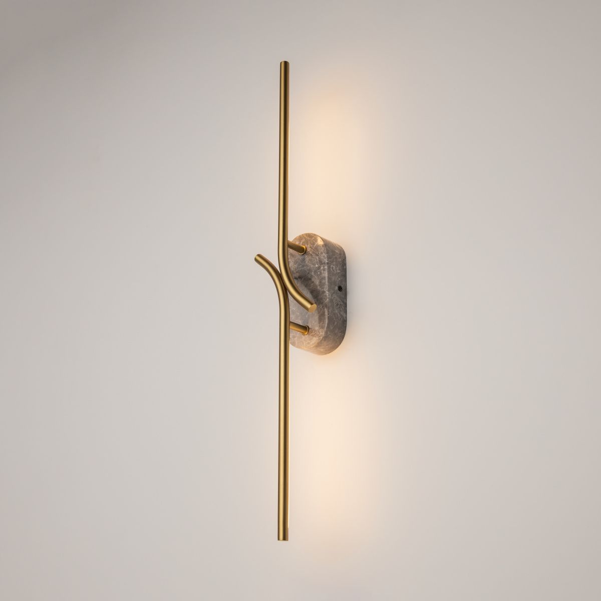 Два варианта основания корпуса. Металлический, цвета – черный и сатинированная латунь.  Мрамор, цвета - черный и серый. Плафон-трубка из металла со скрытым рассеивателем. Серия отражает эстетические чувства эпохи Возрождения, искусно сочетая цветовые палитры,  формы и материалы, характерные для того периода. LED источник света. Цветовая температура - 3000К.