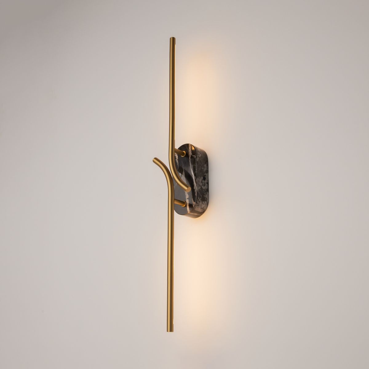 Два варианта основания корпуса. Металлический, цвета – черный и сатинированная латунь.  Мрамор, цвета - черный и серый. Плафон-трубка из металла со скрытым рассеивателем. Серия отражает эстетические чувства эпохи Возрождения, искусно сочетая цветовые палитры,  формы и материалы, характерные для того периода. LED источник света. Цветовая температура - 3000К.