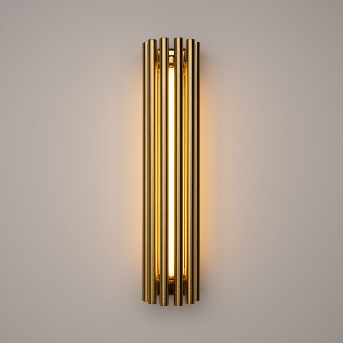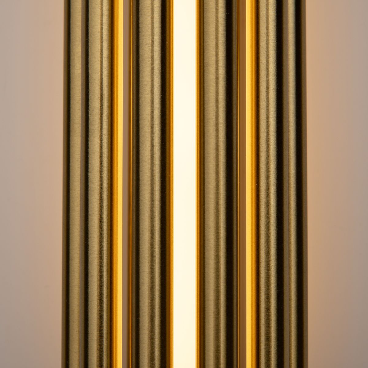 Алюминиевая арматура в двух оттенках: латунь, хром. Мягкий акриловый рассеиватель, плавное распределение света. Декор – металлические трубки в тон арматуре. LED-источник света, цветовая температура 3000К.