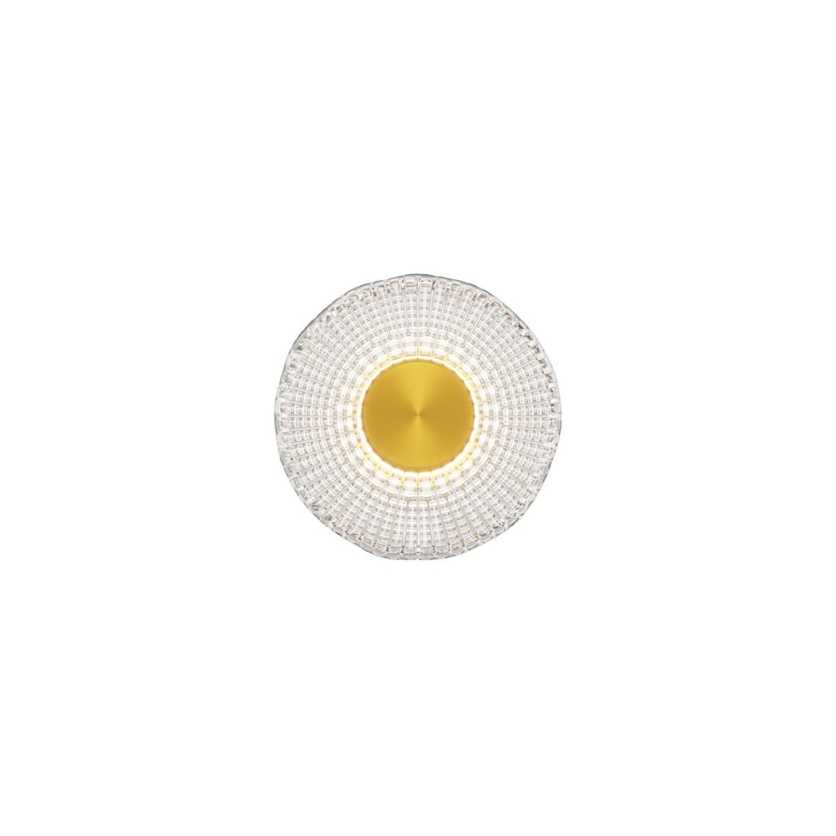 Металлическая арматура, цвет - латунь. Декоративные плафоны из литого стекла. Они рассеивают свет и дают легкие блики на стенах. Стекло плафонов может быть прозрачным или тонированным с паттерном молочного оттенка. Встроенный LED-источник света имеет цветовую температуру 3000 К, угол рассеивания — 120 градусов.