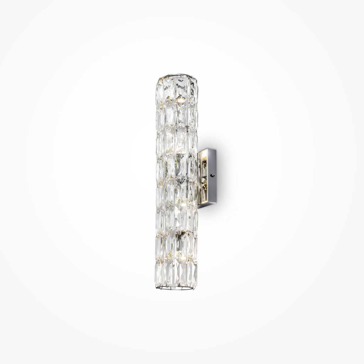 Арматура из металла, цвет – хром. Абажуры из текстиля, нанесенного на ПВХ. Цвет – белый. Декор – массивные кристаллы сложной огранки. Высота подвесных моделей регулируется.