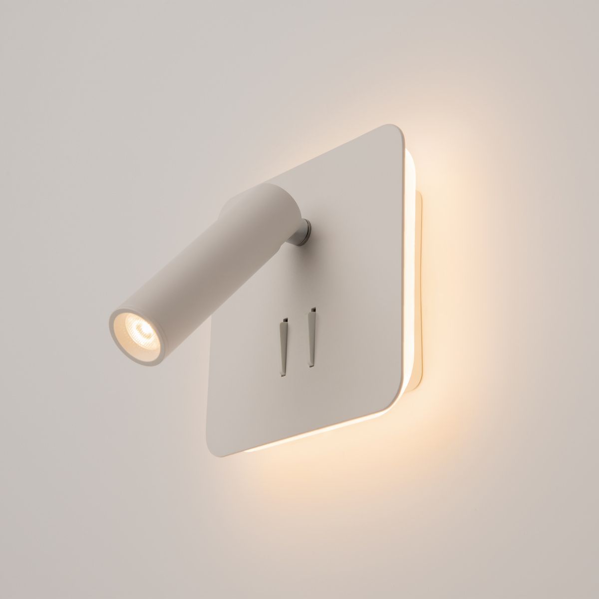 Серия компактных настенных светильников для локальной подсветки в спальнях и гостиничных номерах. Конструкцией предусмотрено два светодиодных источника света, которые можно включать совместно или раздельно. Благодаря поворотному механизму можно с легкостью регулировать направление светового потока, настраивая его под свои нужды. Мягкая подсветка создает комфортную расслабляющую атмосферу. Серия представлена моделями с круглым и квадратным корпусом в черном, белом цвете, а также в трендовом оттенке матового золота.