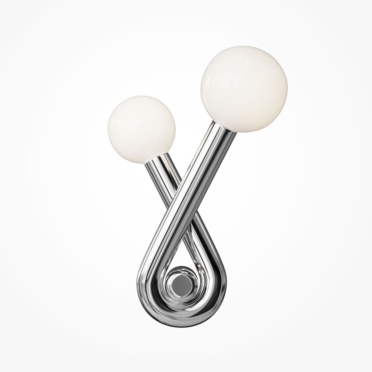 Серия отличается массивной металлической арматурой с органическими изгибами. Представлена в четырех цветовых вариантах: матовый черный, глянцевые латунь, платина и молочно-бежевый. Плафон выполнен из глянцевого белого стекла, скрывающего сменный источник света с цоколем G9. Светильники создают выразительные акценты в интерьере, подходят как для одиночного размещения, так и для создания сложных инсталляций. Рекомендуется для пространств, где важную роль играет художественная составляющая.