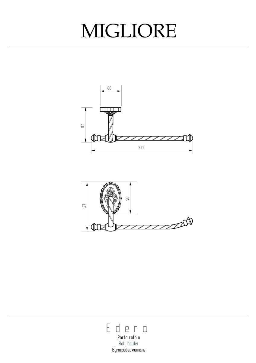 Бумагодержатель коллекции EDERA бренда MIGLIORE — это один из необходимых аксессуаров для ванной комнаты. Благодаря витым элементам и необычной овальной розетке аксессуары коллекции EDERA будут смотреться элегантно и оригинально в классическом интерьере ванной комнаты.
