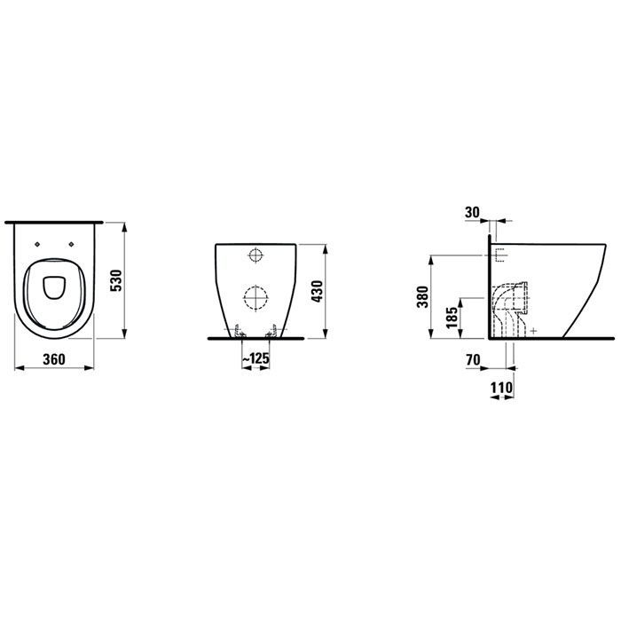 —Чаша унитаза приставная Laufen Pro 8.2295.6.000.000.1 цвет белый без сиденья безободковая