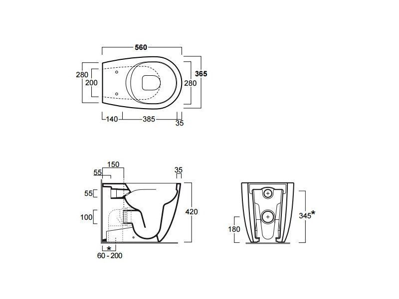 Унитаз приставной  SIMAS VIGNONI VI 01 nero "Rimless" (безободковый), крышка сидение приобретается отдельно, размер 54x36 см, цвет черный глянцевый. Комплект креплений приобретается отдельно.