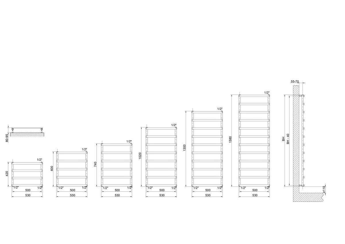 —Полотенцесушитель водяной Cordivari Alessandra 3551680400006 55х160 хром