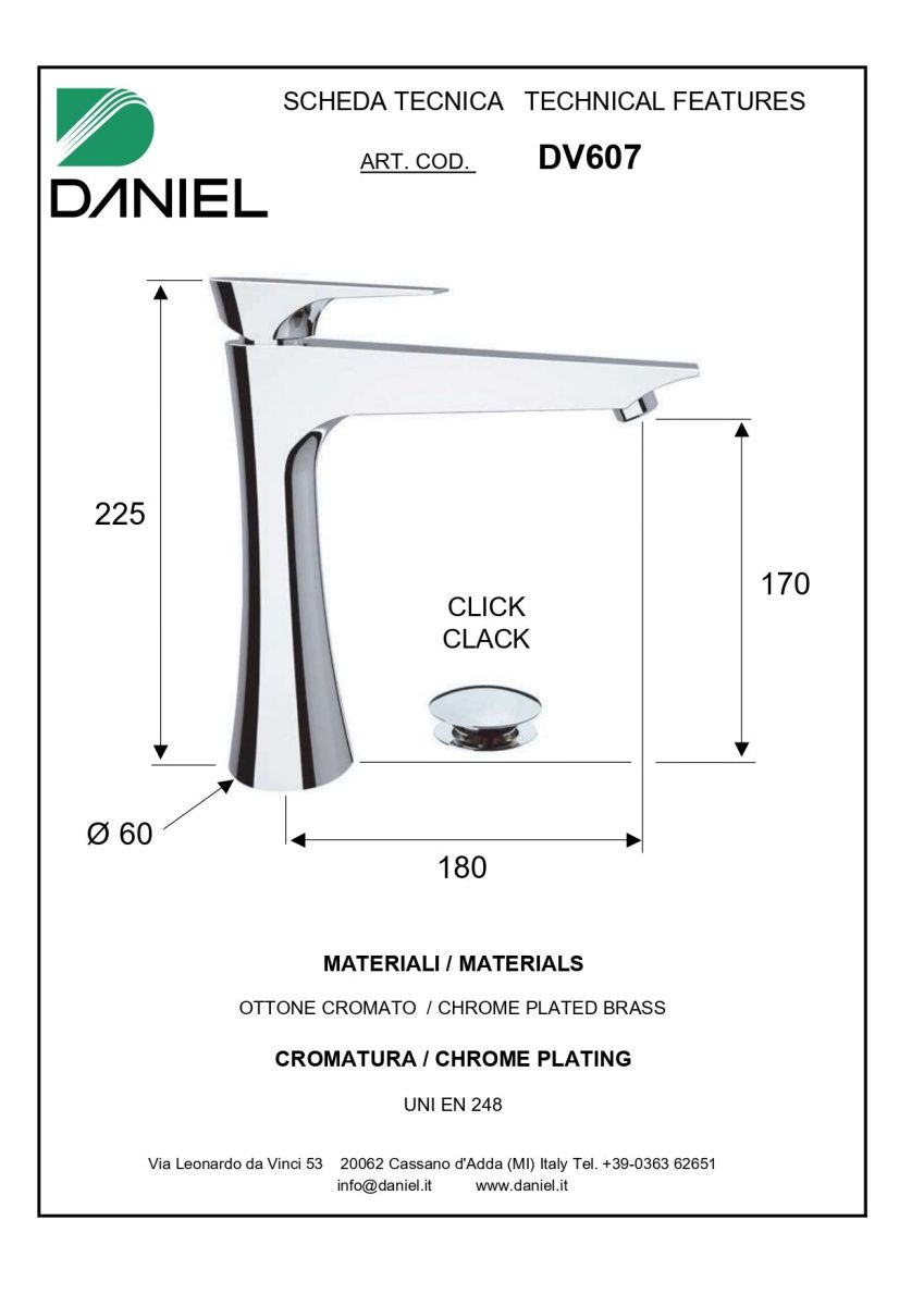 —Смеситель для раковины Daniel Diva DV607-CR на столешницу хром