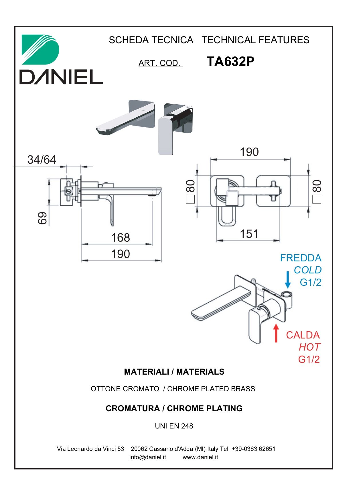 —Смеситель Daniel Tiara TA632P-15 встраиваемый в стену черный матовый