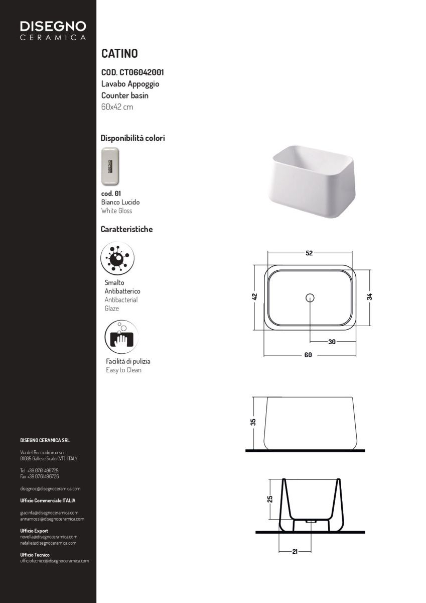 —Раковина керамическая Disegno Ceramica Catino CT06042001 60х40 накладная цвет белый