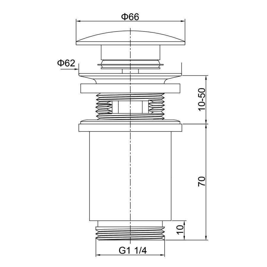 Донный клапан Timo 8011 предназначен для установки на раковину (с переливом или без перелива). Система слива click-clack позволяет открывать и закрывать отверстие одним нажатием.
