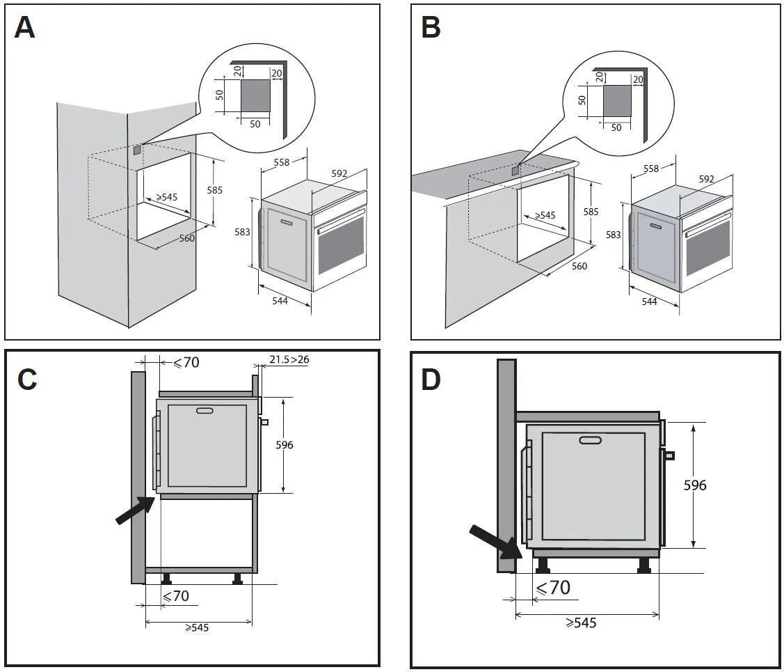 • Размеры ниши для встраивания (ВхШхГ): 585х560х550 мм