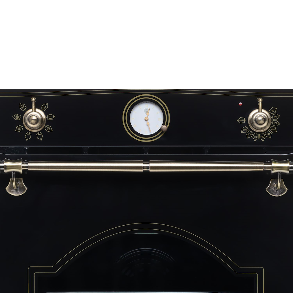Классический дизайн коллекции поддерживается каждой деталью: от формы ручки-переключателя до узора на вытяжке и варочной панели. Приборы выпускаются в двух цветах. Черный цвет подойдет к кухне традиционного стиля или модной эклектики, античный белый – это и прованс, и рустикальный стиль, и даже hi-tech. Традиционность дизайна не противоречит высокотехнологичному оснащению приборов. Телескопические направляющие и 7 режимов нагрева в духовом шкафу, сенсорное управление индукционной варочной панели, мощная вытяжка объединены в единое стилевое решение.Механическое управление