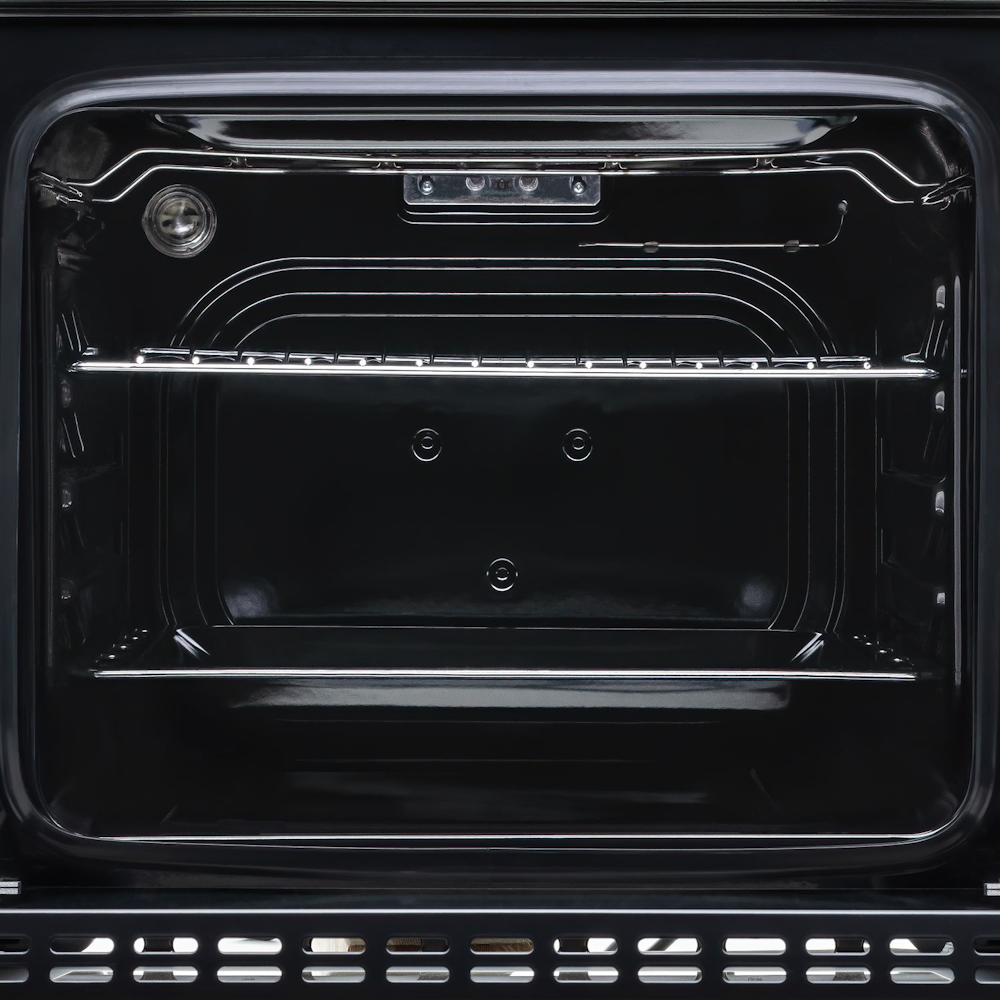 Диоксид кремния (основной компонент стекла) в составе эмали делает поверхность мелкопористой и максимально гладкой. Благодаря этому жир не может проникнуть в поры и прилипнуть к стенкам духовки. Вы сможете очистить духовой шкаф любыми неабразивными средствами легко и быстро. Эта же эмаль наносится на противни, которыми оснащены духовые шкафы, - готовьте без использования пекарской бумаги!Удобные телескопические направляющие