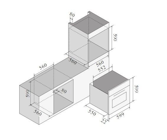 - Размеры ниши для встраивания (ВхШхГ): 590х560х560 мм