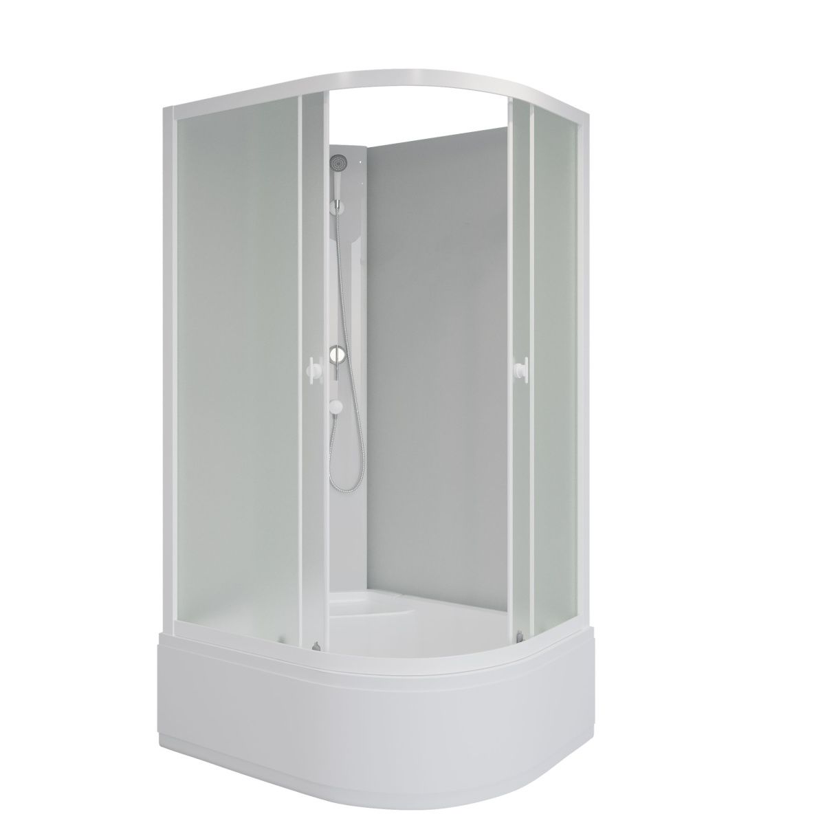 Стекла душевой кабины Promo имеют матовую поверхность. Двери раздвижные с одинарными роликами.